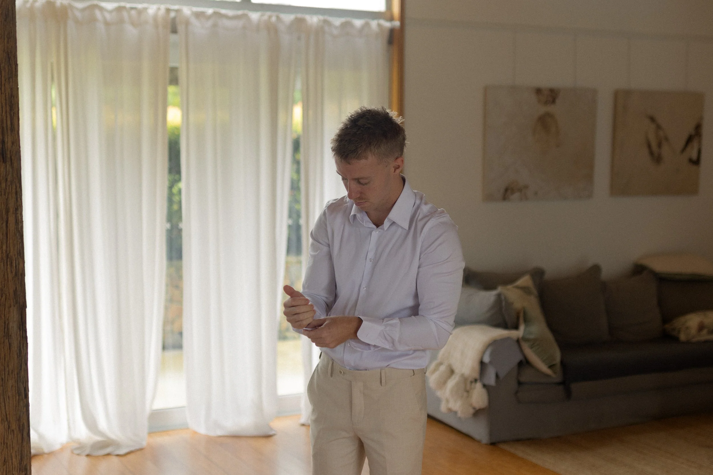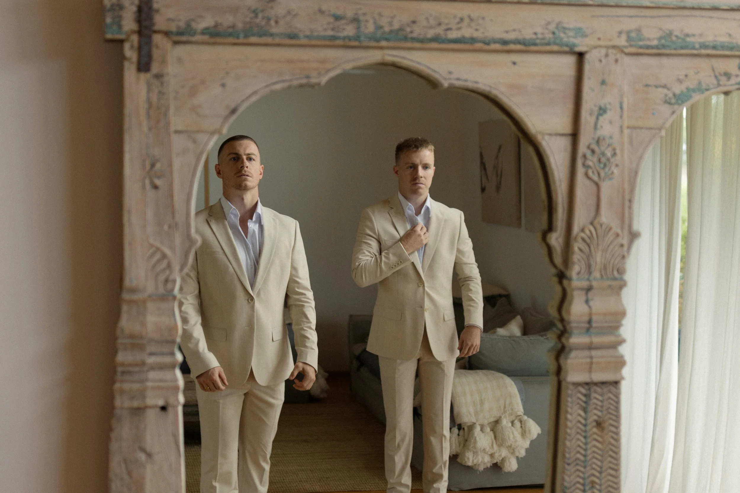 The morning unfolded across the property, with the boys getting ready in the Stables Cottage, sharing laughs and quiet moments before the celebrations began. Meanwhile, the girls spent the morning in the Farmhouse, a calm and light-filled space that set the tone for the day ahead. There was a sense of excitement in the air, balanced with an easy, unhurried pace.