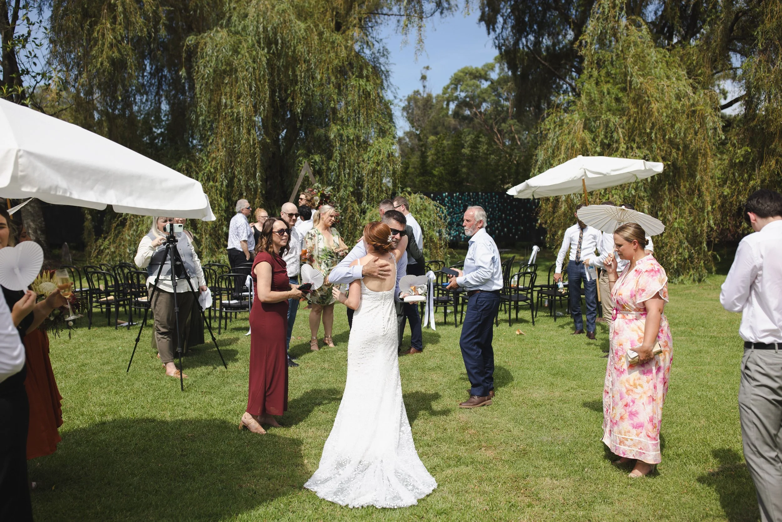 After the ceremony, guests enjoyed afternoon drinks and lawn games across the grounds. The atmosphere was relaxed and celebratory, with plenty of hugs, laughter, and sunshine as everyone settled into the afternoon.