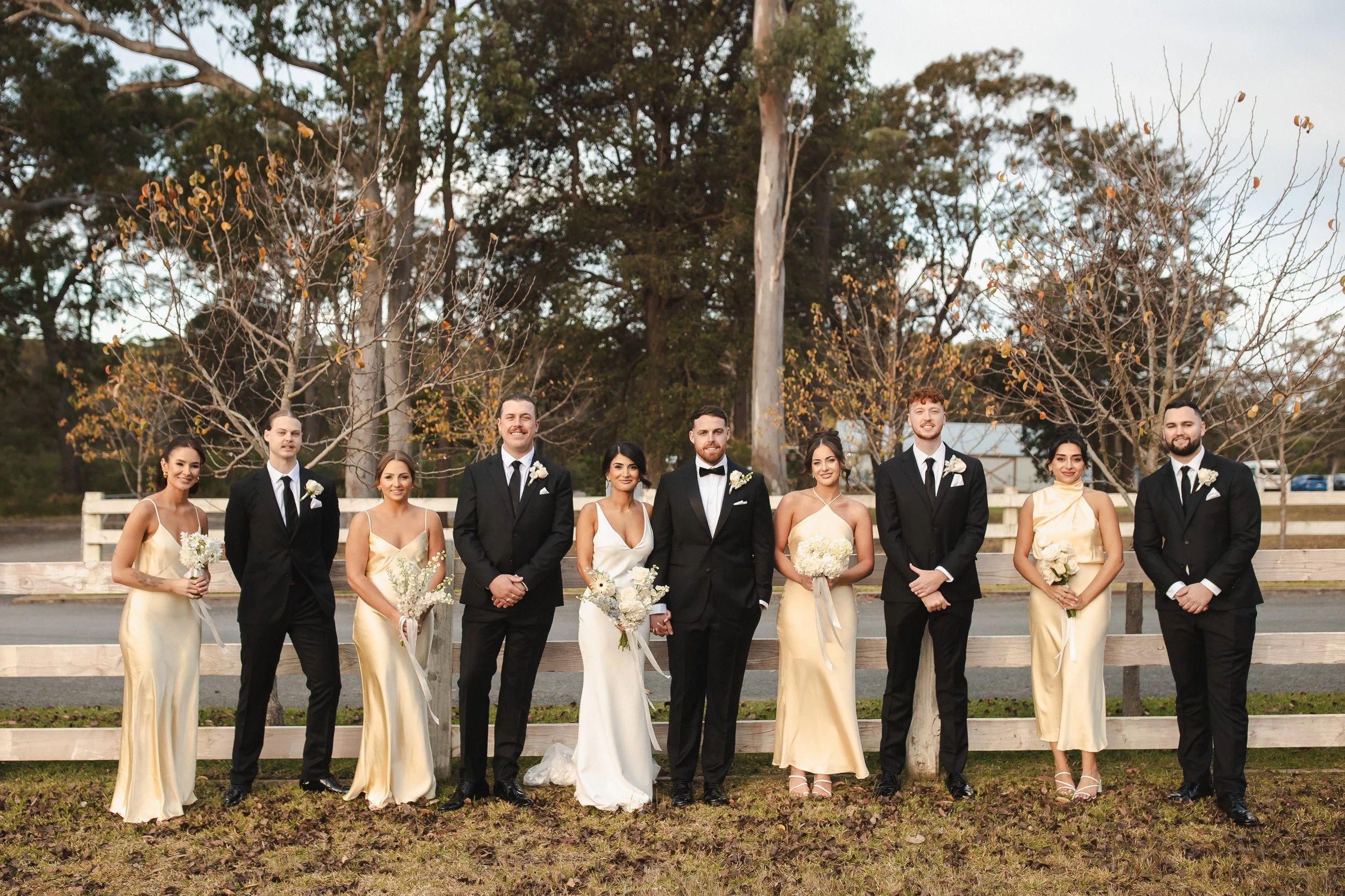 Their wedding was held in beautiful Milton and the two tied the knot overlooking the gorgeous farmland which surrounds the venue. The bridesmaids wore bright coloured gowns which matched their beautiful bouquets while the groomsmen wore a more traditional fit, letting the ladies really steal the show.